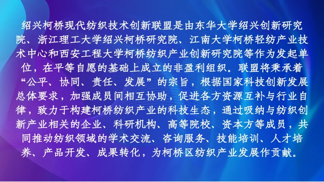 今天上午,由柯桥区印染产业集聚升级服务中心和柯桥区科学技术局共同主办、东华大学绍兴创新研究院和柯桥区印染产业工程师协同创新中心共同承办、绍兴柯桥现代纺织技术创新联盟协办的东华大学科技成果项目路演第一期活动成功举办。