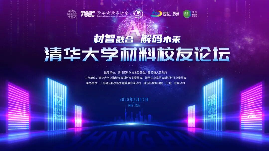 2025年5月17日,由闵行区科学技术委员会、吴泾镇人民政府指导,清华大学上海校友会材料专业委员会、清华企业家协会新材料行委会联合主办,上海吴泾科技园管理发展有限公司、清丞新材料科技(上海)有限公司承办的《清华大学材料专业校友论坛——材智融合·解码未来》在上海闵行吴泾镇紫竹万怡酒店隆重举行。