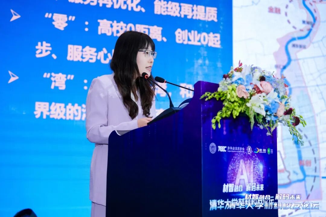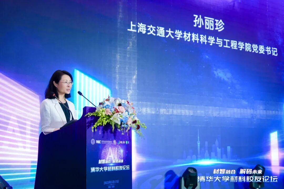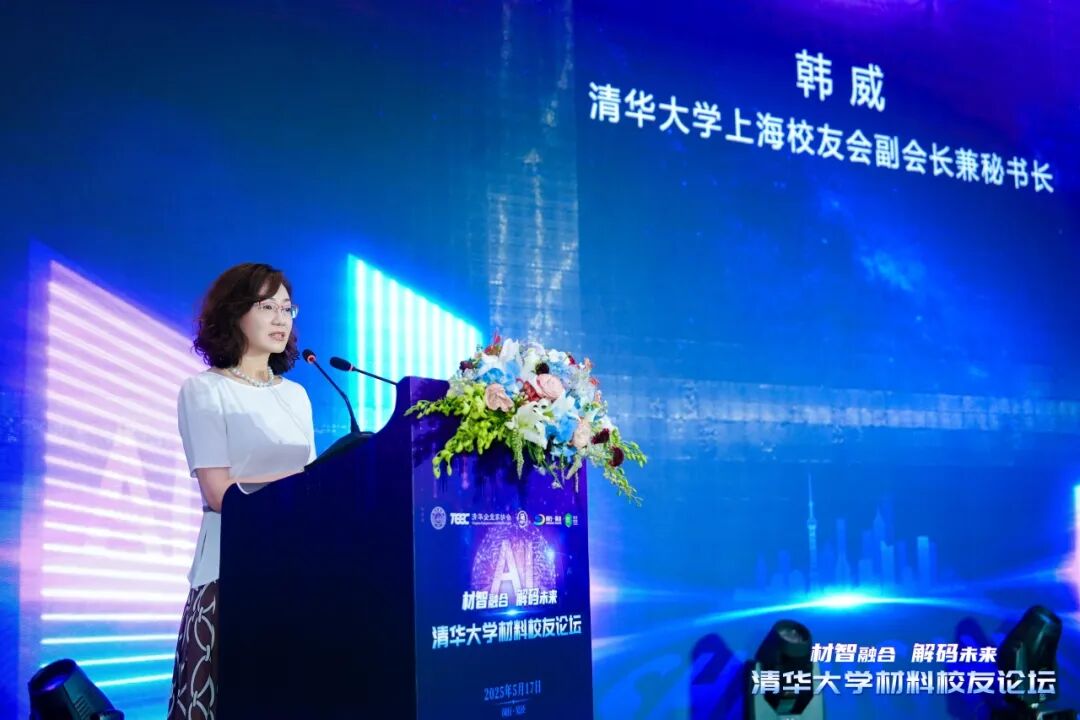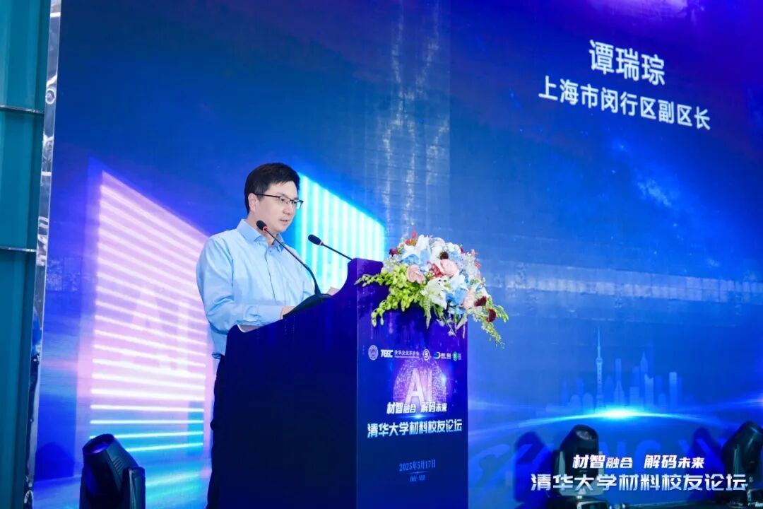 论坛在清华大学上海校友会材料专业委员会秘书韩若冰的主持下拉开帷幕。闵行区副区长谭瑞琮、清华大学材料学院党委书记杨志刚、上海交通大学材料科学与工程学院党委书记孙丽珍、清华大学上海校友会副会长兼秘书长韩威分别发表致辞。嘉宾们一致强调,科技创新与产业融合是驱动区域高质量发展的核心动力,并对AI技术赋能材料科学的前景表达了高度期待。