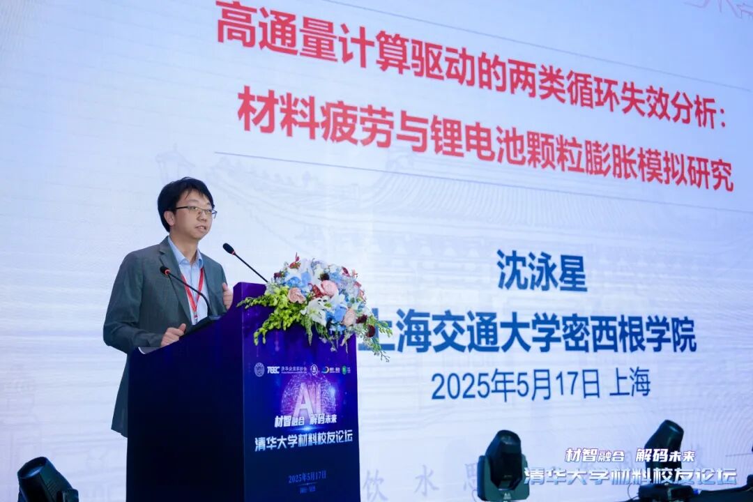 上海交通大学密西根学院副院长、副教授沈泳星教授以《高通量计算驱动的两类循环失效分析:材料疲劳与锂电池颗粒膨胀模拟研究》为题,通过利用循环加载问题的特点加速以适用于高通量计算,应用于锂电池颗粒膨胀失效研究, 加速方法为循环失效的高通量计算提供了可能性。