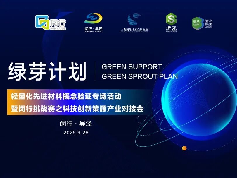 2025年9月26日,由闵行区科学技术委员会、吴泾镇人民政府指导,上海国际技术交易市场、上海吴泾科技园管理发展有限公司与绿丞科技服务(上海)有限公司联合主办,清丞新材料科技(上海)有限公司承办的“绿芽计划|轻量化先进材料概念验证专场活动暨闵行挑战赛之科技创新策源产业对接会”在上海市闵行区吴泾镇清丞新材料孵化器成功举办。