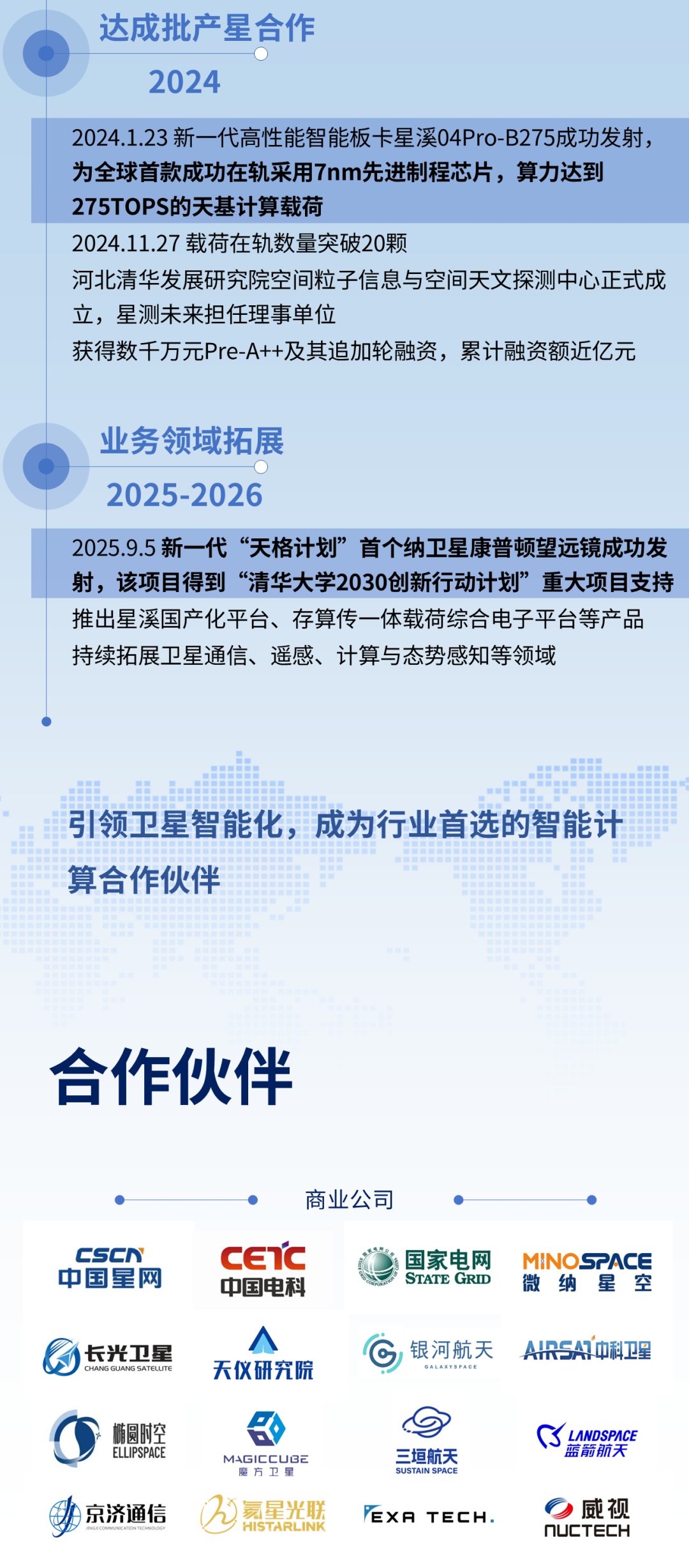 在市场拓展方面,将与行业伙伴携手,积极开展天基智能应用新场景验证,包括卫星通信优化、星载任务规划、空间态势感知和太空计算等。